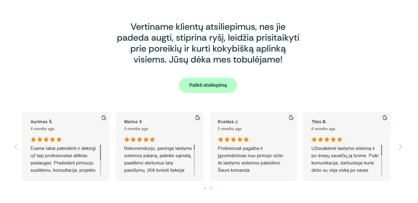 - Sukurtas individualaus dizaino internetinis puslapis orientuotas į pardavimų kanalo sukūrimą, įdiegta online registracijos forma