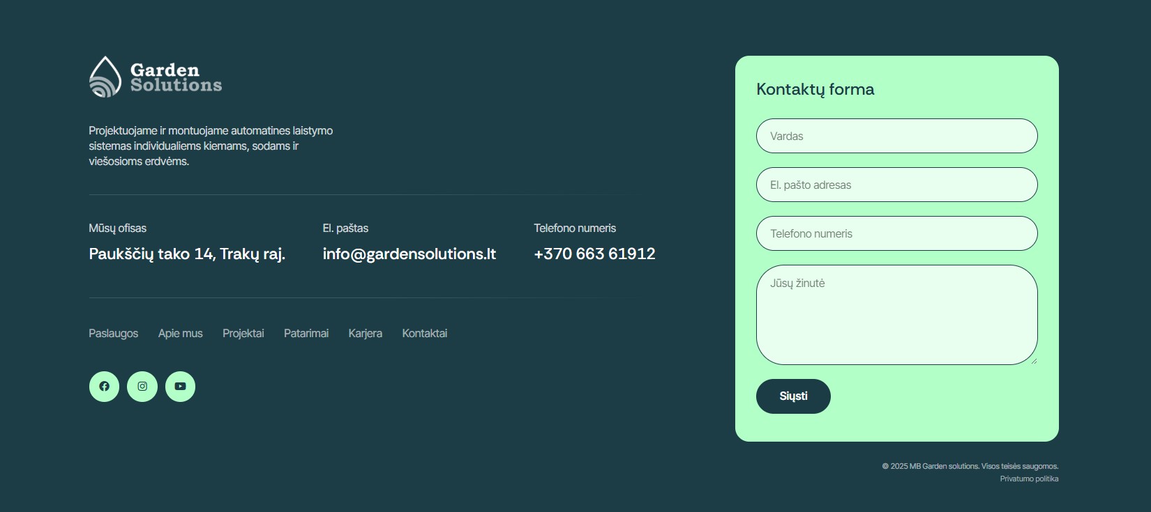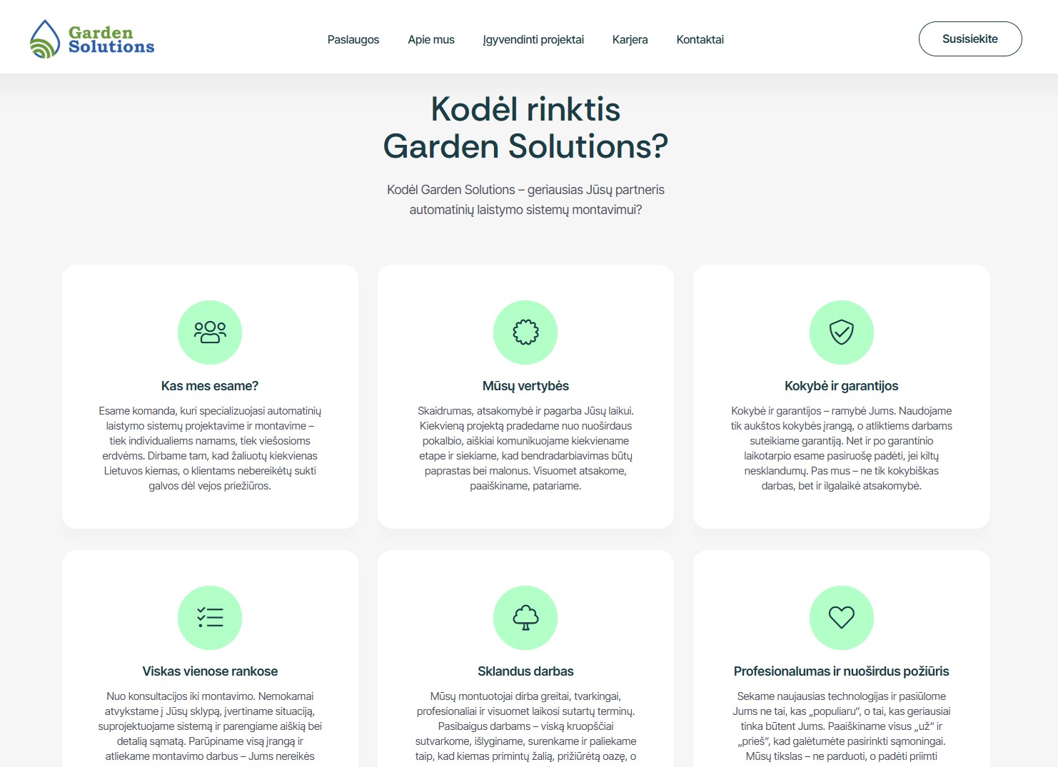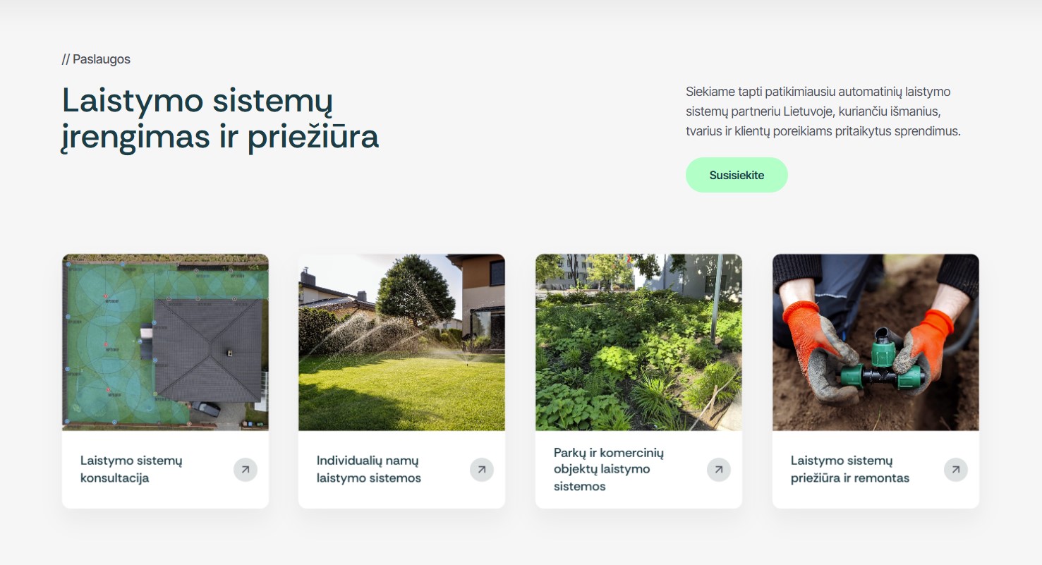 Įmonės veiklos sritis: projektavimas ir montavimas automatinių laistymo sistemų